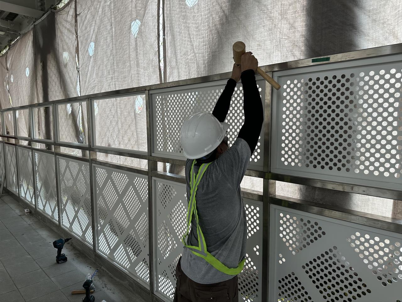 113.07.21 跨站天橋西出口外牆沖孔鋁板安裝