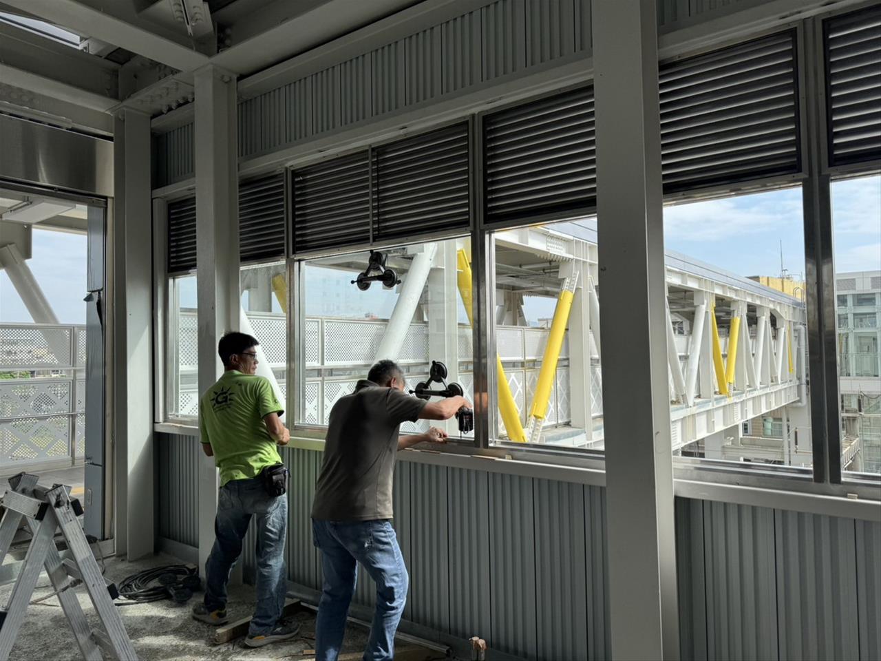 113.10.29 跨站天橋銜接平台窗戶玻璃安裝及窗框填縫作業