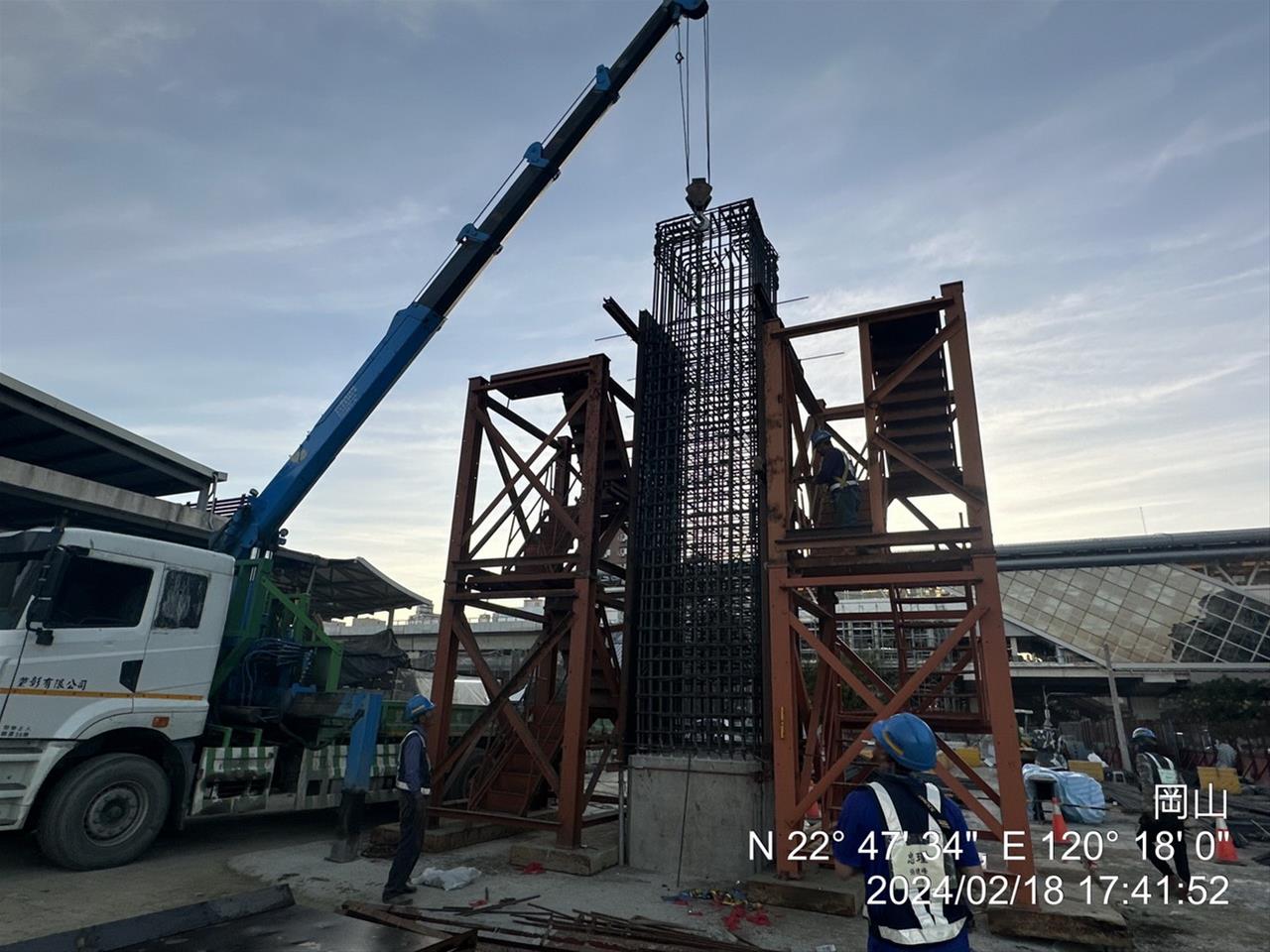 113.02.18跨站天橋P3墩柱第二升層鋼模吊裝組立