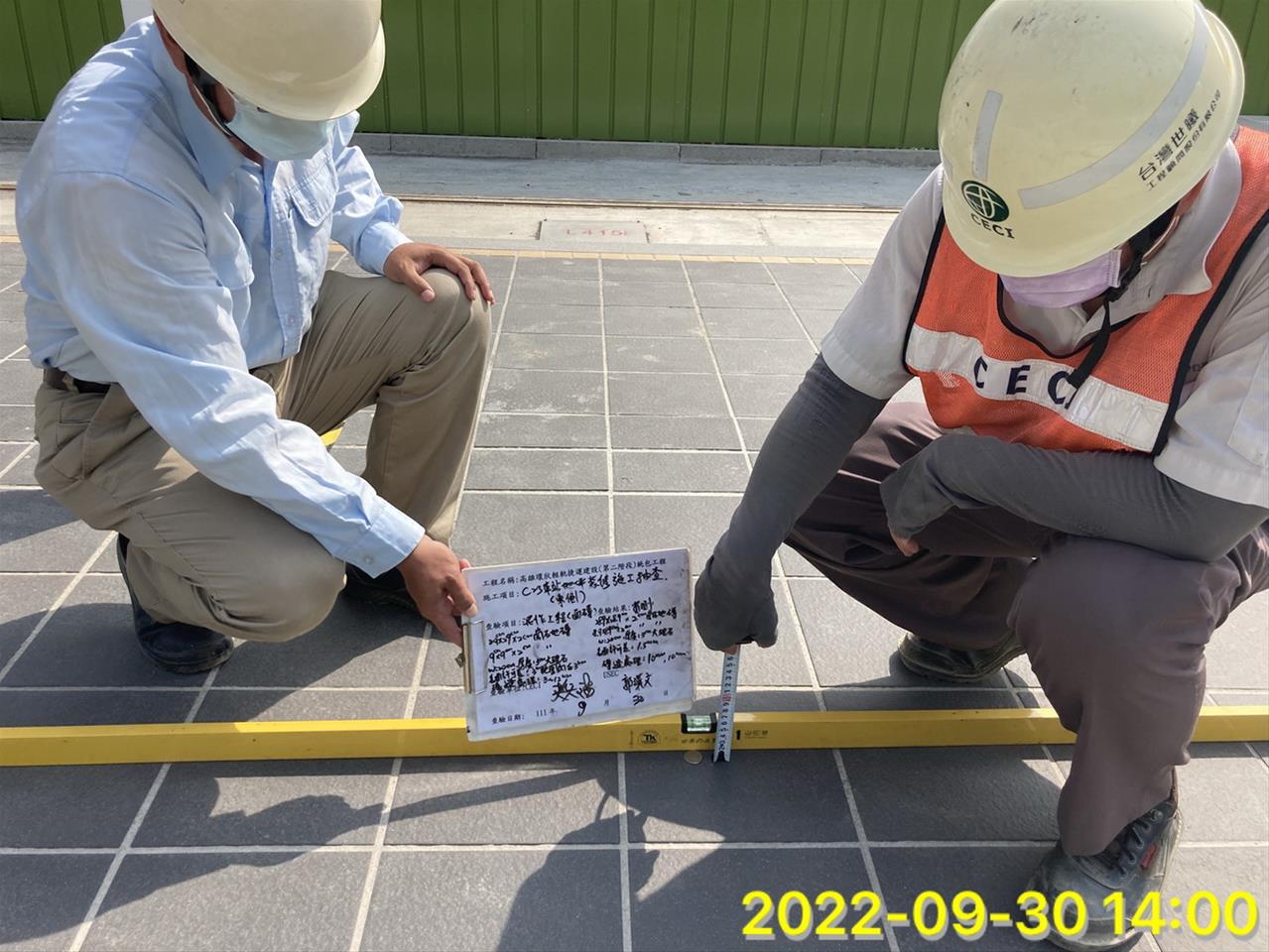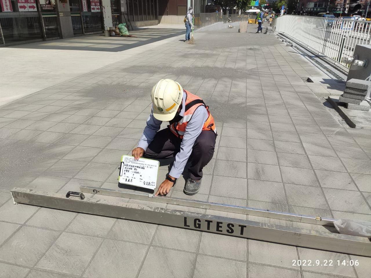 111.09.05 東二東四北側人行步道洩水坡度施工查驗