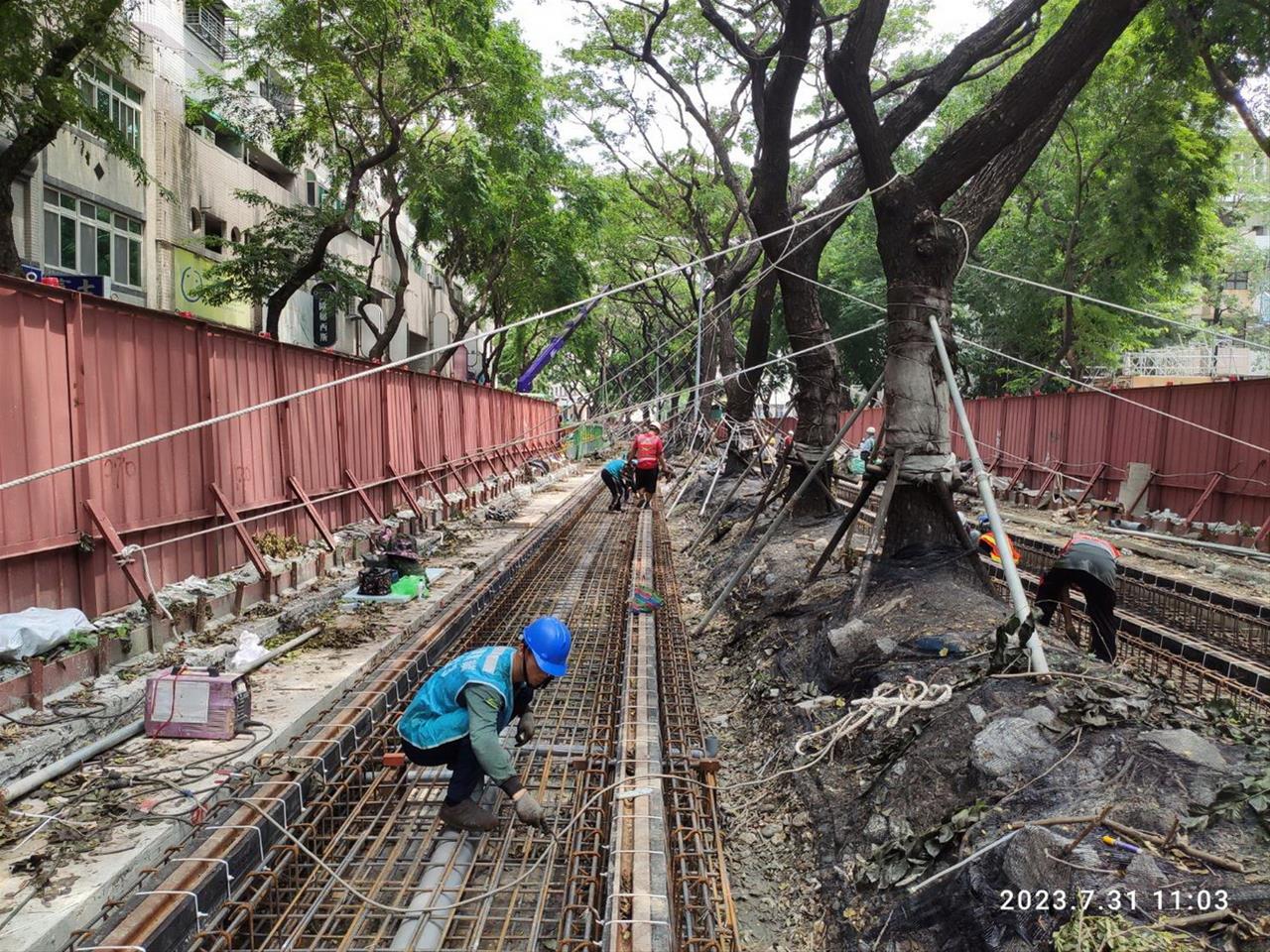 112.07.31雄工側門-大豐路口 軌道版鋼筋綁紮、模板分料