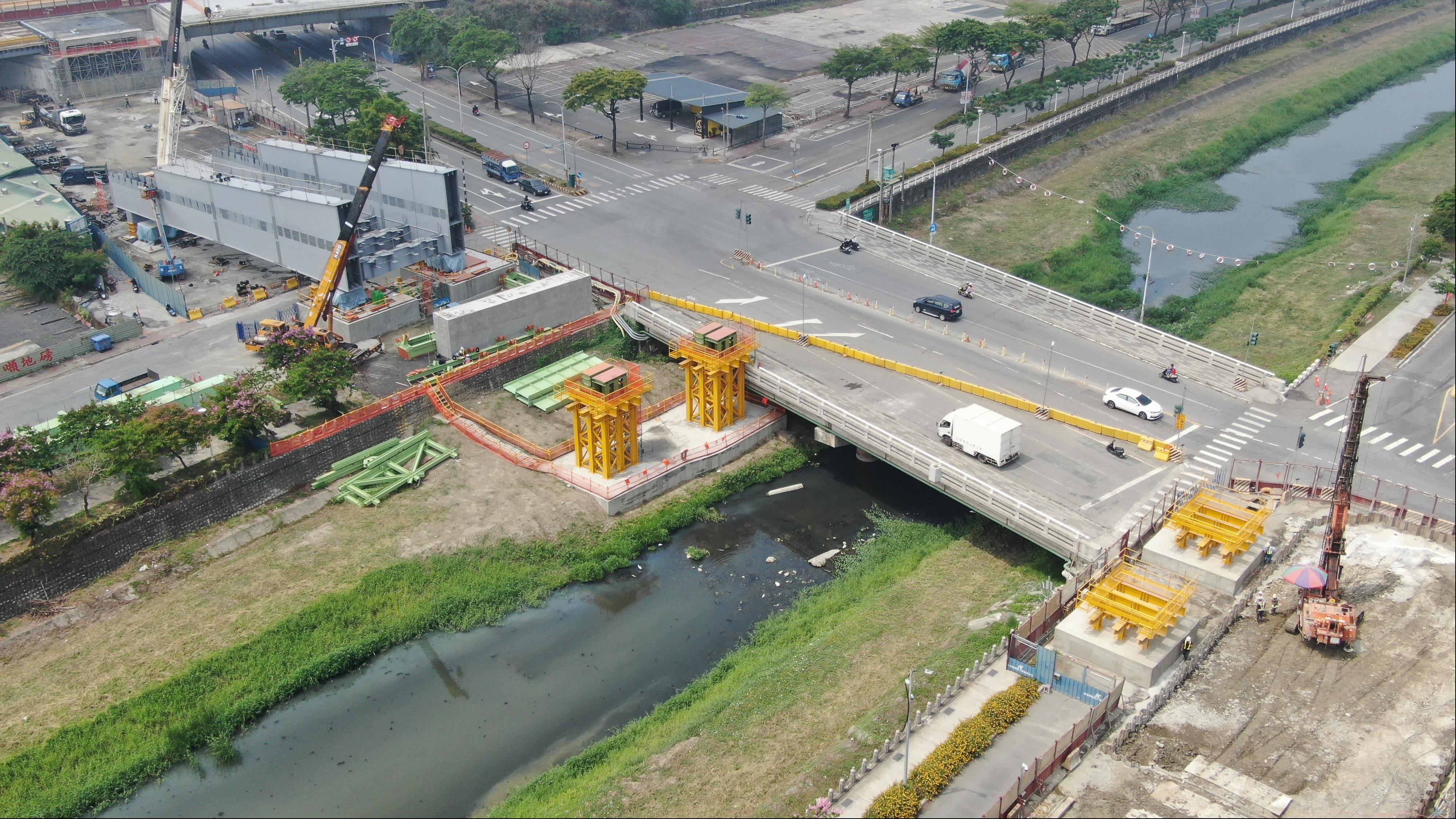 The first phase of the KMRT Gangshan Extension is currently going well in progress, and the steel bridge across the Agongdian River has been hoisted and launched in May. In order to reduce the risk of flood seasons, the design of this bridge will avoid lying on the keel block. Furthermore, for the safety of the construction and the decrease of the impact on the surrounding traffic flow, the construction will adopt the Top-Bunt Slippage Method for the first time in Taiwan. It is expected to be completed this project across the Agongdian River in early August.