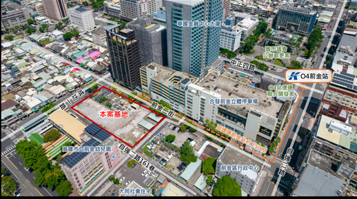 本案基地位於高雄市前金區,鄰近捷運橘線O4前金站,周邊商業設施發達、環境整體交通便捷且生活機能完備,現況為閒置空地及停車場使用,呈低度利用之狀況。配合市府近年捷運軌道建設,積極活化大眾運輸場站周邊之市有土地,透過本次都市更新案積極活化公有資產價值並改善基地周邊環境。