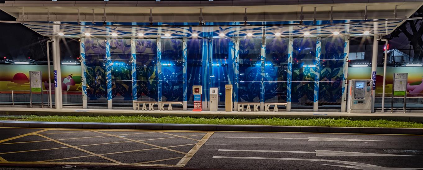 The new section of Kaohsiung Light Rail, the C21A-C24 stations, entered operation on October 5, 2022. Among them, the C24 station, which intersects with the MRT Red Line R13 Station (Aozihdi Station), features Hakka paper-cutting imagery in the design of the station. This design was inspired by the chairman of the Hakka Affairs Commission, who wanted to integrate the indigo-colored Hakka floral fabric into the urban landscape to create a city of humanistic art and happiness.